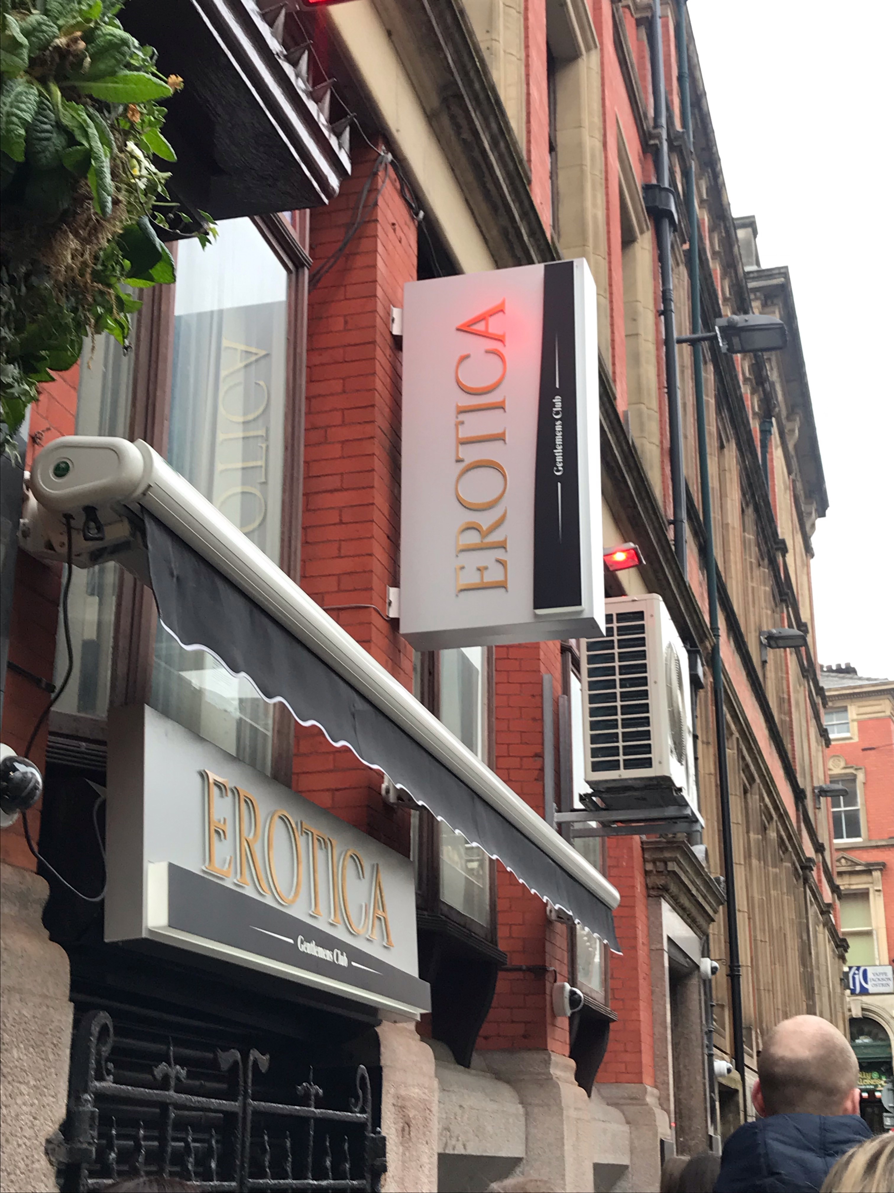 ‘X in the City’ was probably the most blatant in the type of establishment it was, and for this I’d say it would be the most similar to what I might see in Amsterdam. However, due to complaints about having a lap dancing bar so public, it had been relocated to a quieter area of the city centre. This is a common theme throughout the tour, with ‘Angels Paradise’ located in Liverpool’s ‘Gay Town’, sandwiched between two well known gay bars.